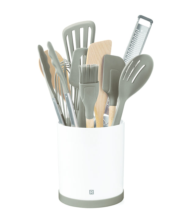 Ce porte-ustensiles rotatif en porcelaine au design chic et épuré permet de garder les ustensiles de préparation à portée de main en tout temps. On aime son système de roulement à billes qui permet de le faire pivoter et ses séparateurs qui maintiennent les ustensiles en place et bien organisés.