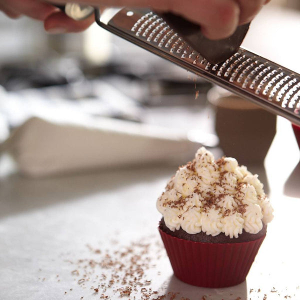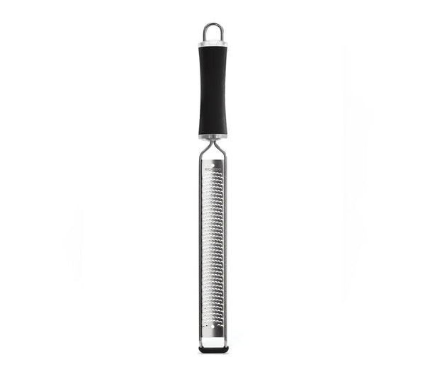 Cette râpe longue à fine surface en acier inoxydable est parfaite pour râper le zeste des agrumes, la muscade ou l’ail. Son manche et sa bande antidérapante permettent une prise confortable et sécuritaire.