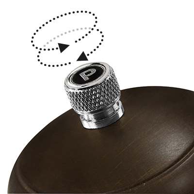 Le broyeur en acier durable au carbone s'ajuste pour obtenir la bonne dose de poivre à chaque repas, d'une mouture fine à plus grosse. Le bouton d'ajustement est facile à tourner et ajoute une élégante touche au moulin offert en différents finis.