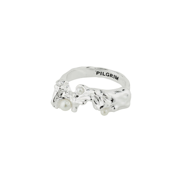 Discover beauty in the detail!! Silver-plated RAELYYN ring from Pilgrim. An exciting design with organic shapes and small white beads that add an elegant twist to your summer wardrobe. Accent with a bright and glossy nail polish and let the ring shine effortlessly. The ring is adjustable in size so it can be customised to fit you - and it's made from min. 75% recycled material to protect our environment.