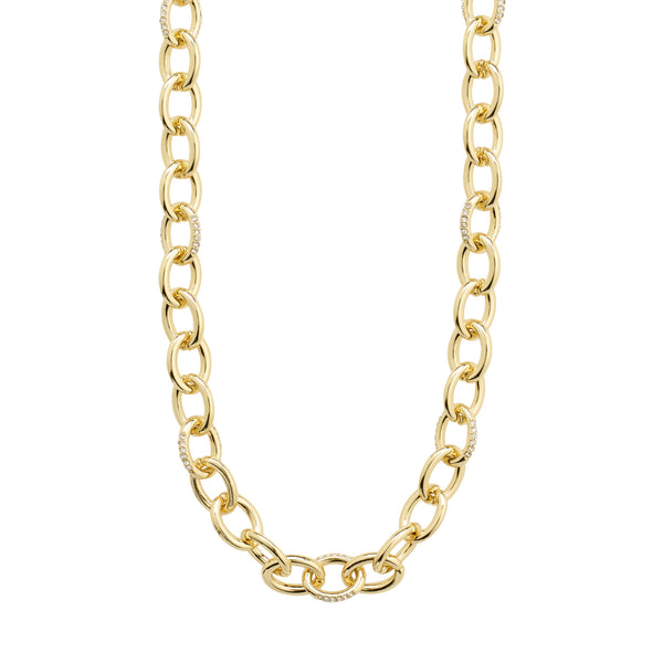 Confidence is the best accessory, and the AMIRI necklace is here to boost yours. The gold-plated cable chain comes in a flowing design that adds a modern twist to classic elegance. Shiny Preciosa crystals on selected links add a subtle but eye-catching shine - perfect for upgrading any outfit with a touch of glamour. A genderless piece that appeals to anyone who appreciates timeless design with an edge. The chain measures 50 cm and can be adjusted in length according to mood and occasion. It is made from min. 75% recycled material with care for the planet.