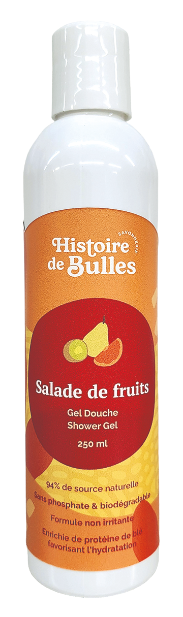 Gel douche 250ml. Notre gel douche est enrichie de protéine de blé et d'aloes ce qui favorise l'hydratation. Formule non irritante à 95% de source naturelle. Sans phosphate & biodégradable.