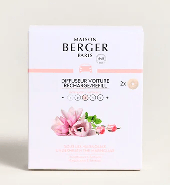 Les Recharges diffuseur voiture Sous les Magnolias au parfum fleuri, voluptueusement sensuelles, sont une invitation au voyage.