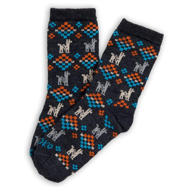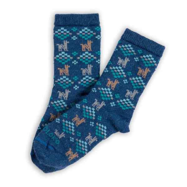 Bas imprimé de POKOLOKO fabriqué à partir de laine de bébé alpaga, l'une des fibres les plus luxueuses au monde, avec des capacités thermiques incroyables qui peuvent retenir la chaleur si nécessaire et permettre la circulation de l'air pour éviter la transpiration par temps plus chaud.