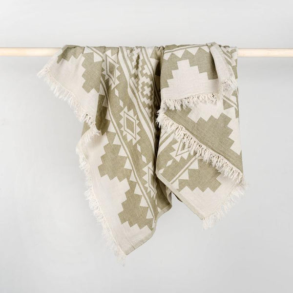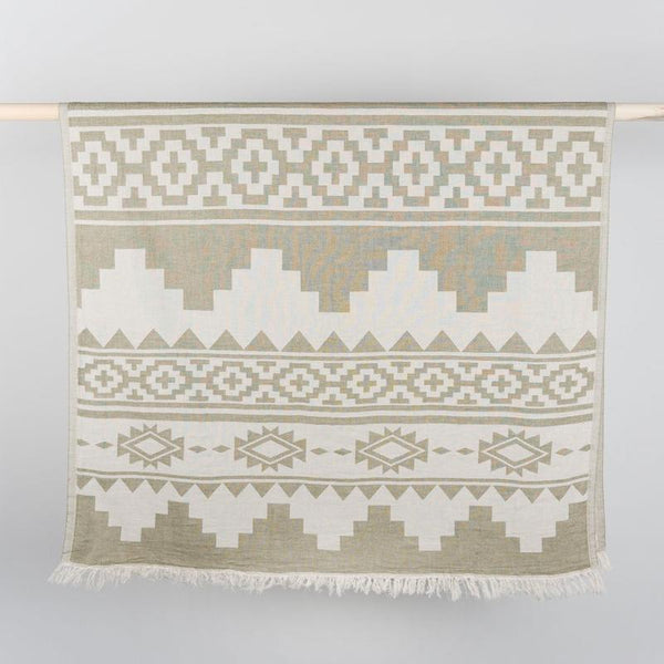 Serviette jacquard double épaisseur réversible de POKOLOKO, avec franges. Textile multifonctionnel aux dimensions généreuses, adapté au bain, à la plage, pour une écharpe et aux voyages.