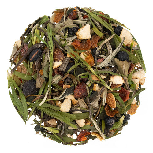 Découvrez un thé aussi raffiné que vivifiant avec notre Thé Blanc Bleuet Tonique inspiré du Lac-Saint-Jean, une création exclusive qui marie la délicatesse du thé blanc à la fraîcheur fruitée et acidulée des agrumes. Enrichi de bleuets, de bambou aux notes végétales, d’églantier vitaminé, de citron et de mandarine, ce mélange énergisant offre une infusion lumineuse, parfumée et riche en antioxydants.