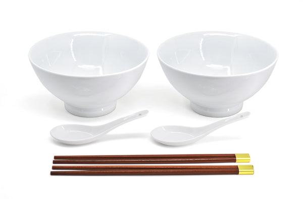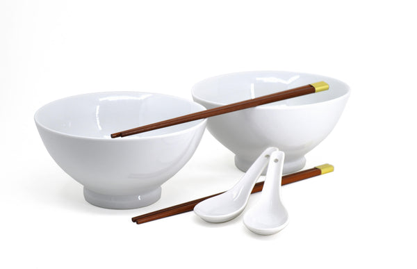- Ce service contemporain pour 2 personnes comprend : 2 bols 750 ml (25 oz), 2 cuillères, 2 paires de baguettes réutilisables.