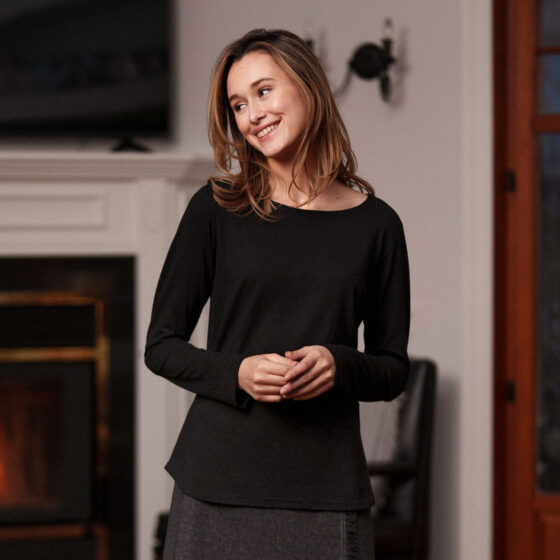 Rappelant presque la forme de notre tunique indispensable, le chandail Gauguin deviendra à son tour votre indispensable en toutes saisons. Un bas et une encolure arrondis taillés dans un tissu confortable pour vous accompagner dans votre quotidien.