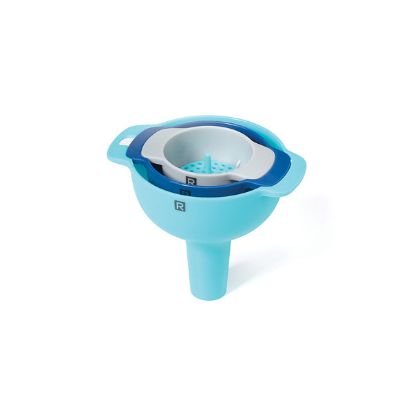 Avec cet ensemble de trois entonnoirs, vous ne vous tromperez pas. Quels que soient vos besoins, la passoire amovible convient aux trois formats. Économisez sur l’espace de rangement, en les emboîtant !