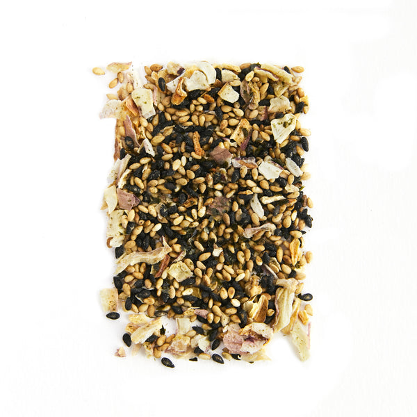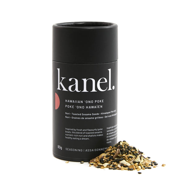 Mélange frais et savoureux de KANEL, croquant et plein d'umami pour les bols poké, le riz et plus encore. Grâce au mariage des graines de sésame noires et blanches, des flocons d'algues riches en nutriments, de magnifiques échalotes et d’un soupçon de poivre de Cayenne, te concocter un poké devient un vrai jeu d’enfant.