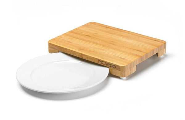 - Permet de couper puis de dégager la surface de travail facilement en glissant une assiette sous la planche