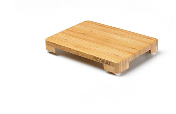 La forme de cette planche à découper en bois de bambou RICARDO permet de couper les aliments et de dégager la surface en glissant une assiette sous les poignées latérales. Elle peut se transformer en plateau de service pour les sushis, fromages et charcuteries.