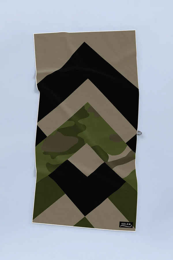 La serviette style camouflage réinventée, un motif qui ne se démode pas et qu’on aime.