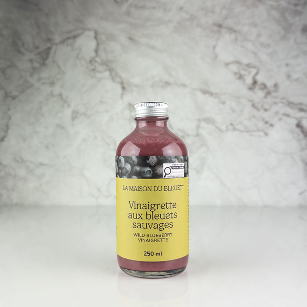 Ingrédients: Jus de bleuets [bleuets sauvages, eau] • Huile de canola • Sucre de canne biologique • Vinaigre de cidre • Sel • Moutarde